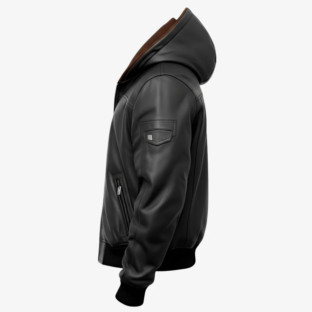 The Men’s Rogue Black Leather Hooded Bomber Jacket is a masterpiece of contemporary fashion. This jacket was constructed with careful attention to detail with premium quality sheepskin leather that provides a comfortable, smooth touch as well as high quality look. With the hooded detail this will surely be a staple in your wardrobe. It features a sleek front YKK zipper closure and thoughtfully designed slanted Zipped Pockets, making it as convenient as it is Stylish. Soft rib knit cuffs and bottom hem gives you a comfortable fit as well as keeping you warm while looking good in the jacket. Whether out casually for the day or on your way to a sporting event this lightweight bomber jacket brings layers of style. Make it yours, and make it your best side by side.